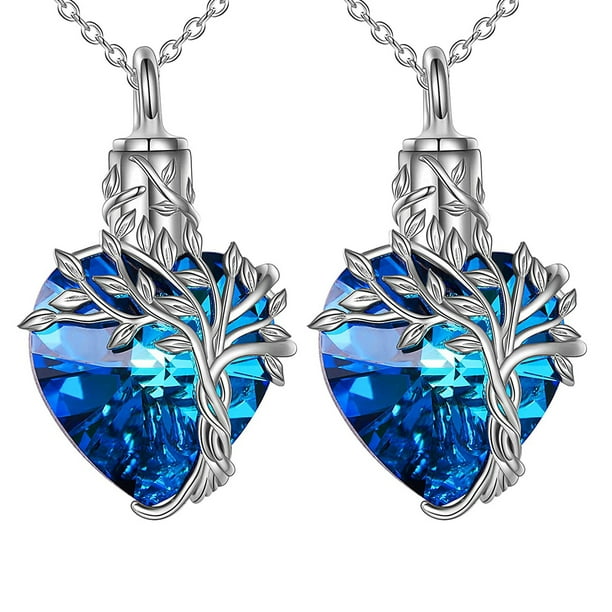 Pwfe 2 Pcs Heart Tree Of Life Urn Necklace For Ashes Cremation Jewelry With Crystal Memorial Jewelry Gifts For Women Girls Silver Walmart Com